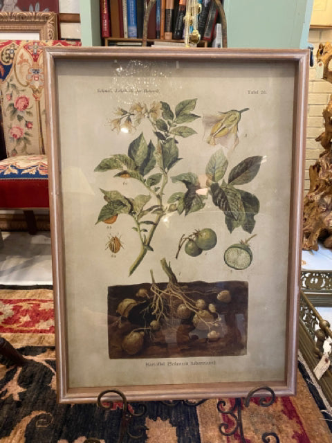 Lehrbuch botanical print. 1 of 2 prints. Upper text reads "Schmeil, Lehrbuch der Botanik". Bottom text reads "Kartoffel (Solanum tuberosum)". Wooden frame. Shipping options available